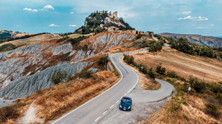 Vanaf Vignola volg je met je huurauto de SP4 door de vallei van de Panaro-rivier. Terwijl je richting de bergen klimt, maken de boomgaarden plaats voor beboste heuvels en kloven. Je komt langs de Sassi di Roccamalatina, monolieten van meer dan zeventig meter hoog met steile wanden, die in schril contrast staan met het zacht glooiende landschap eromheen. Het is een belangrijke broedplaats voor roofvogels, zoals de slechtvalk.